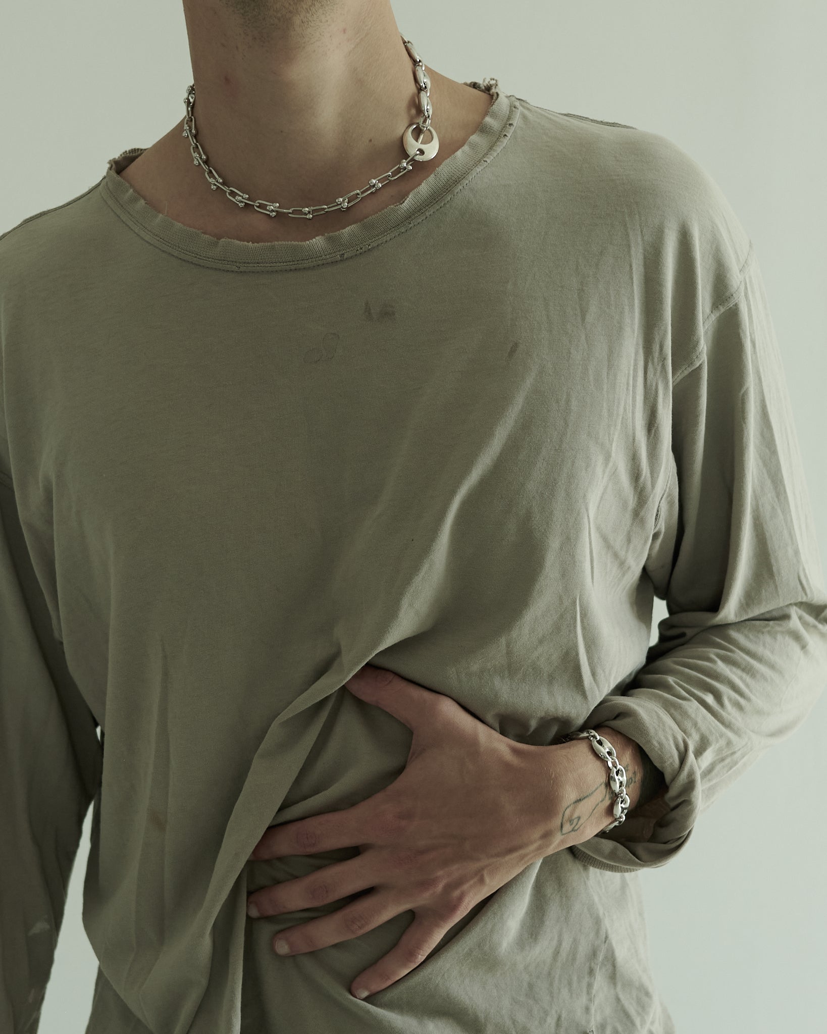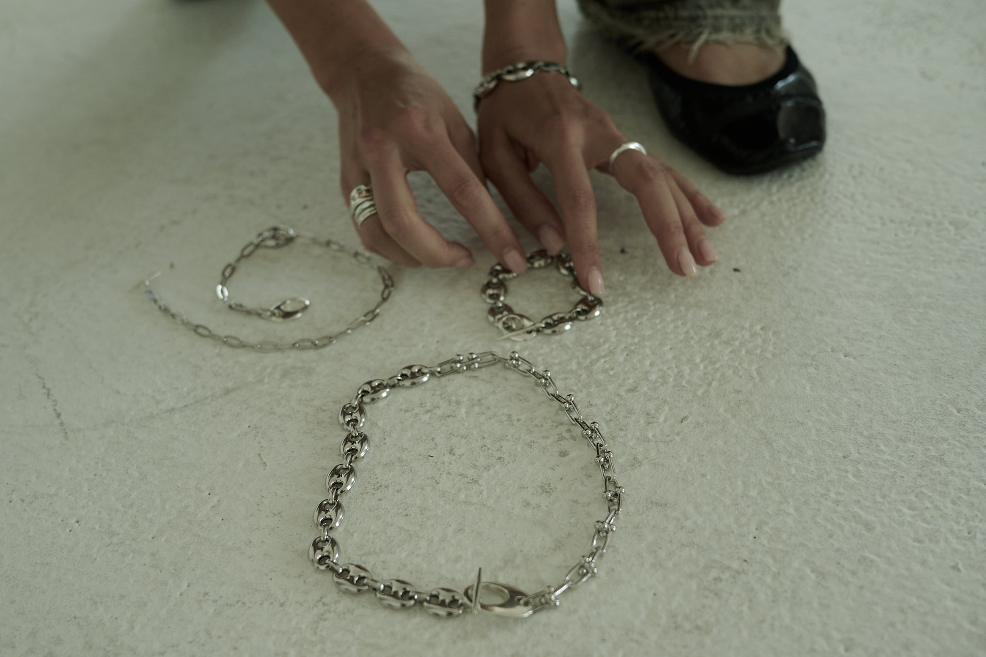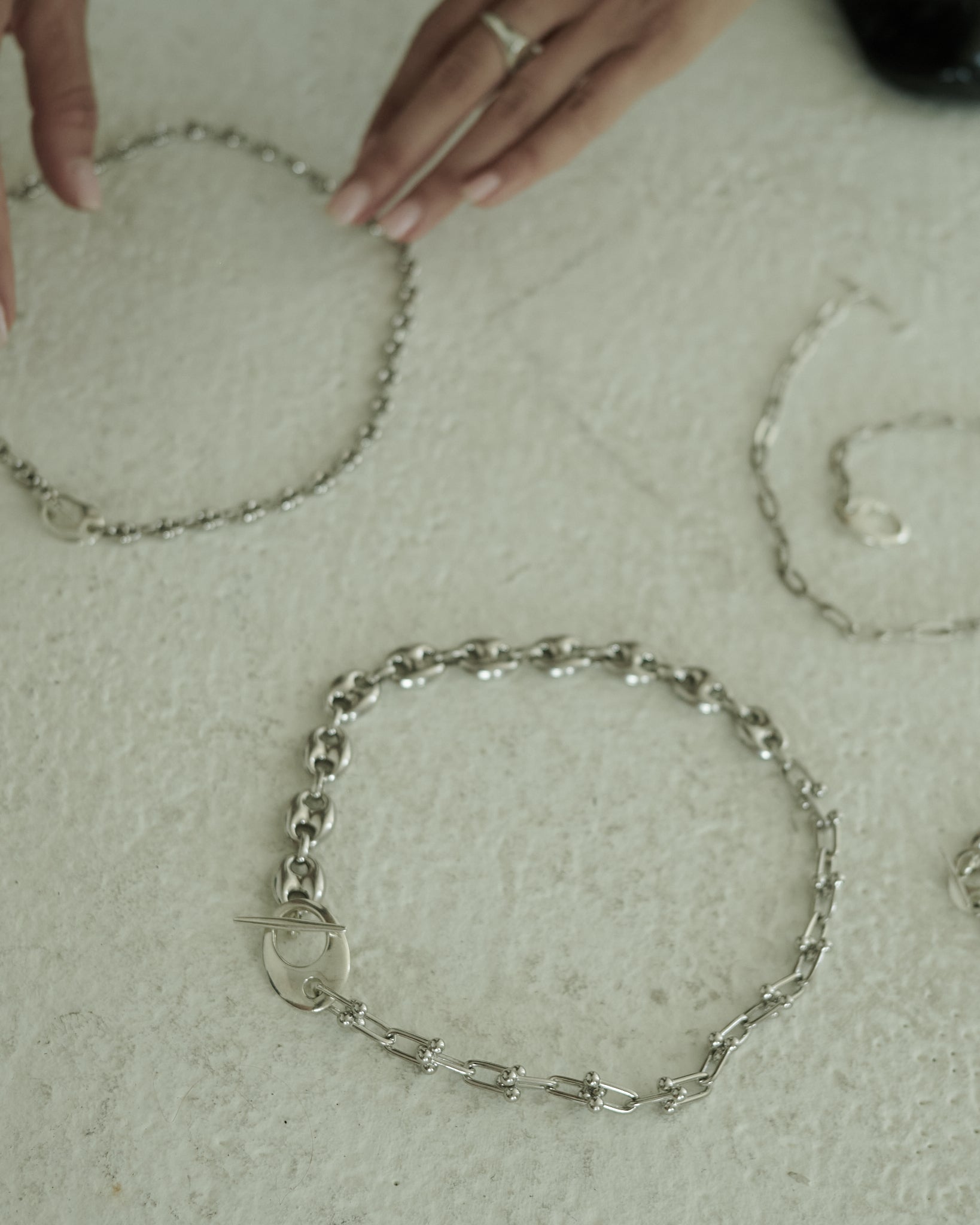A study in contrasts—classic minimalism meets sculptural edge. The Half Edge necklace, finished with the Eternal Clasp, balances bold design with refined versatility. 925 Italian sterling silver, handmade for everyday wear or statement moments.