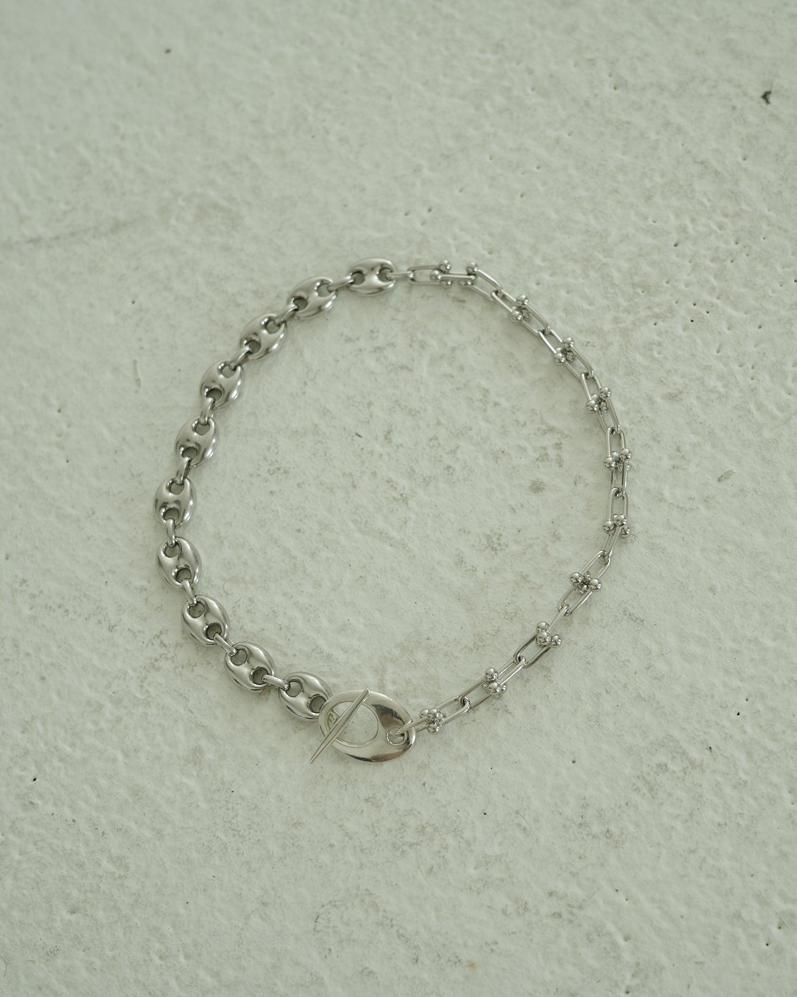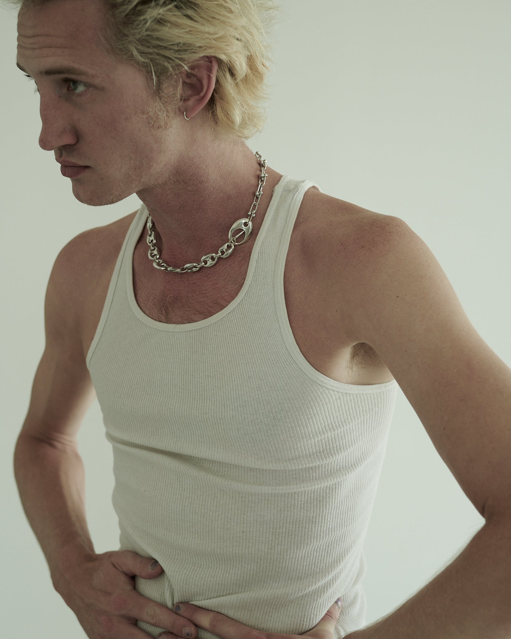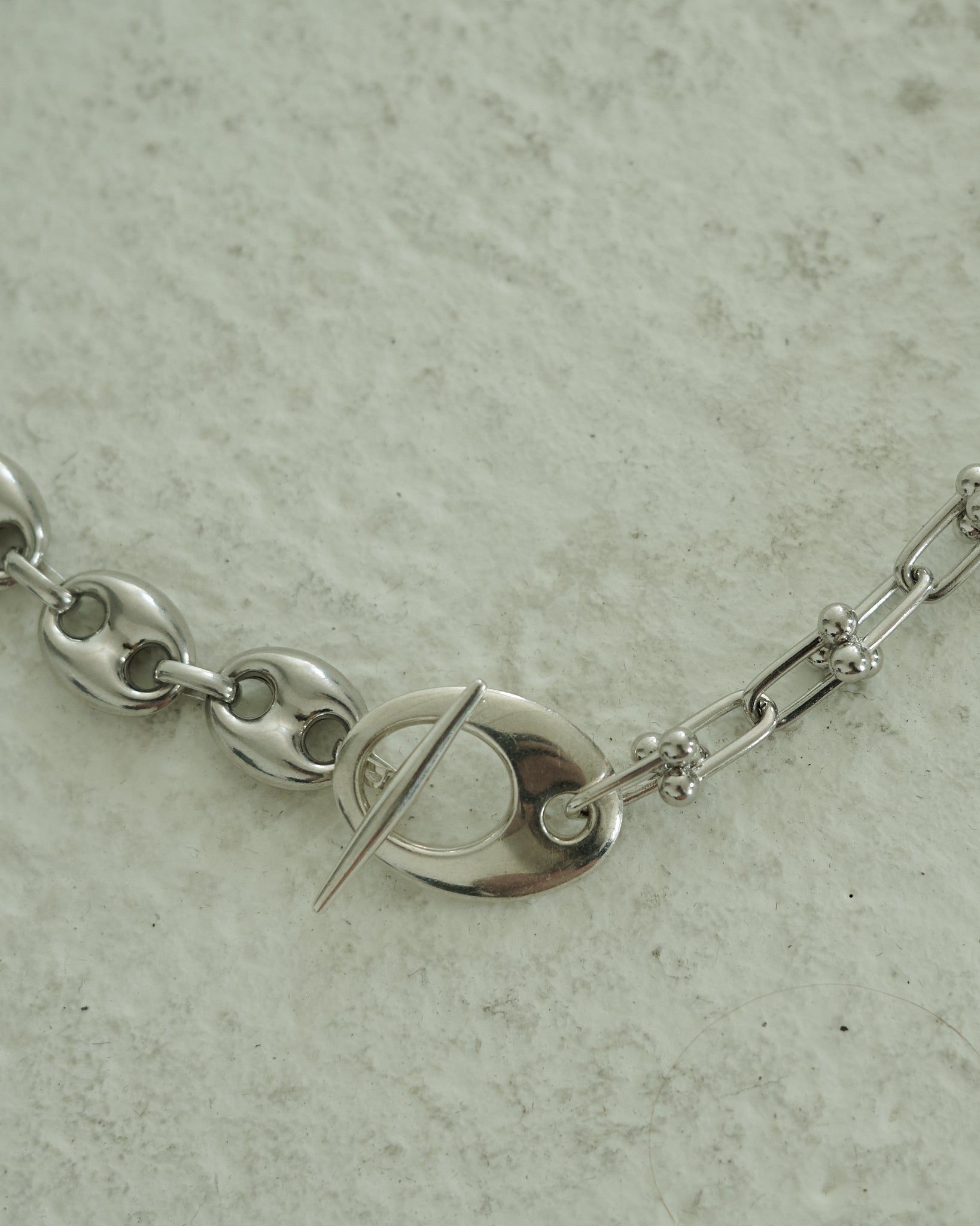 A study in contrasts—classic minimalism meets sculptural edge. The Half Edge necklace, finished with the Eternal Clasp, balances bold design with refined versatility. 925 Italian sterling silver, handmade for everyday wear or statement moments.