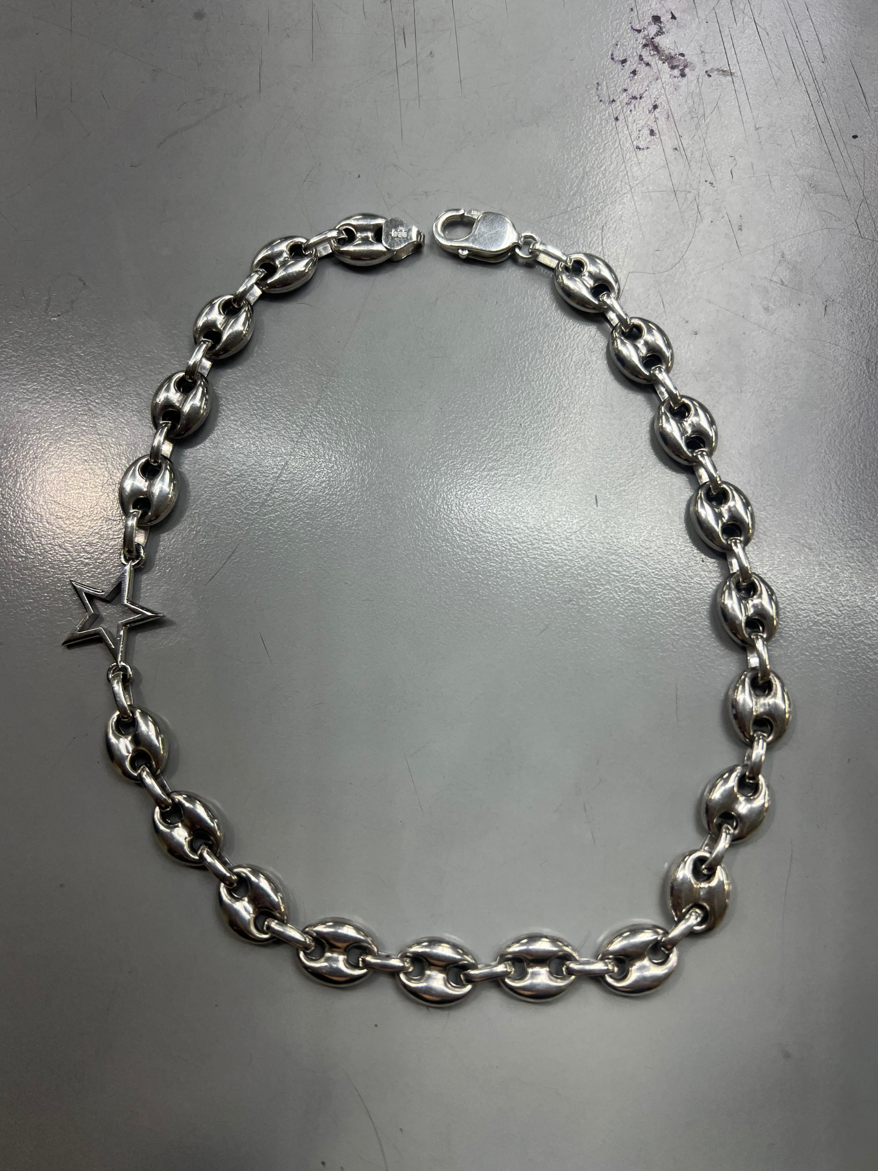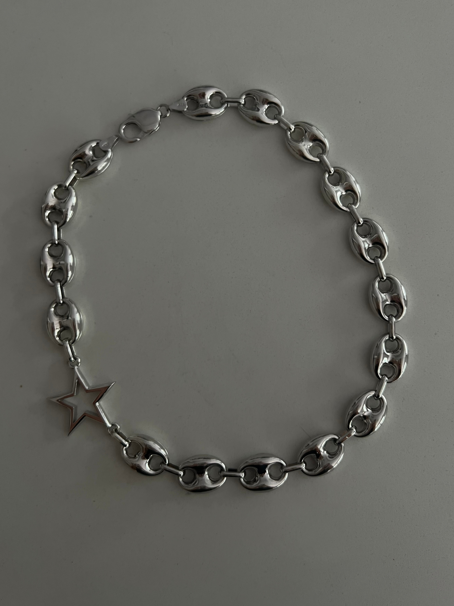Sculpted from solid sterling silver, Eternal Star features a bold, architectural chain anchored by a single star—intentionally set off-center for quiet tension. Wear it asymmetrically or centered, depending on your mood. It’s a piece that moves with you.