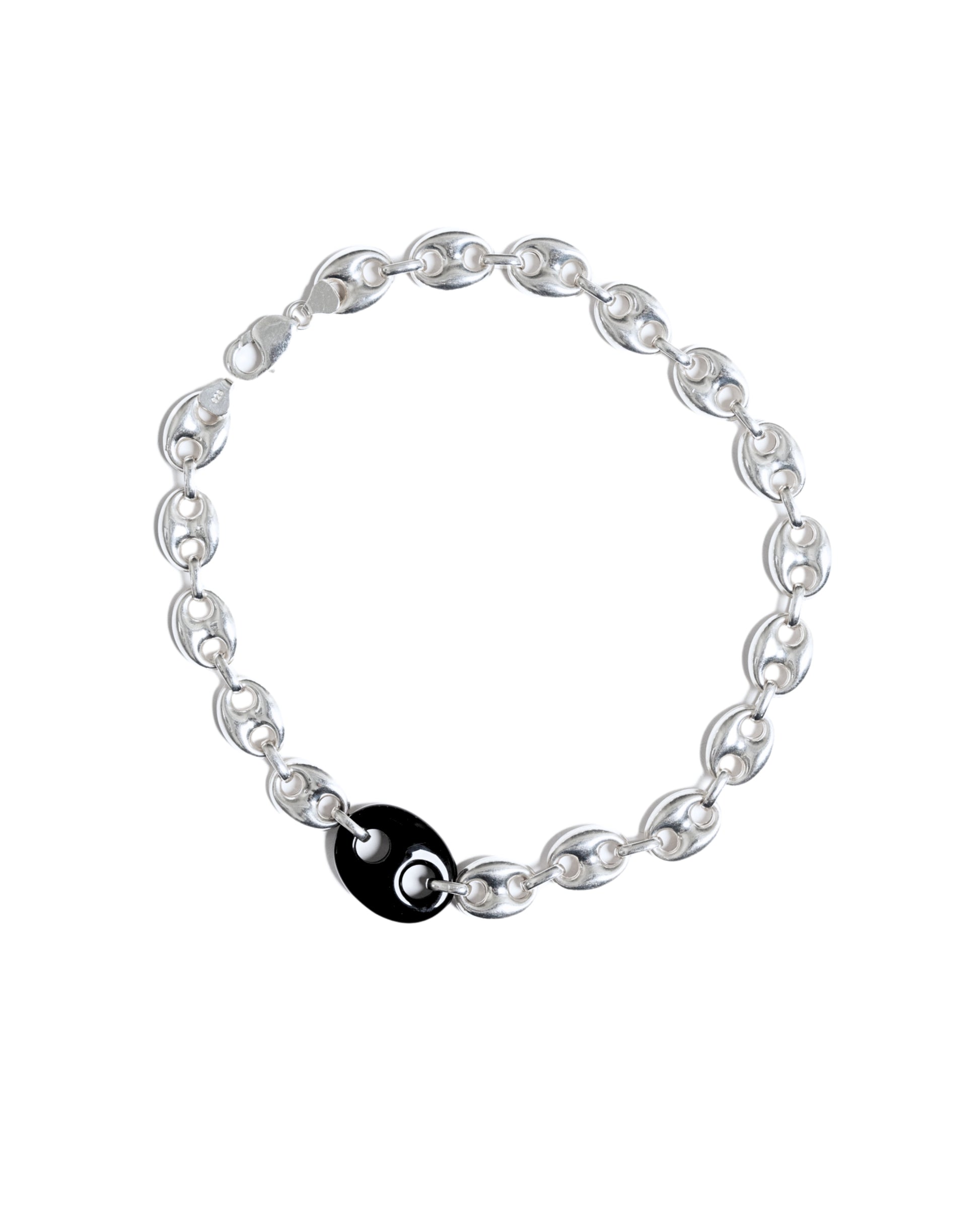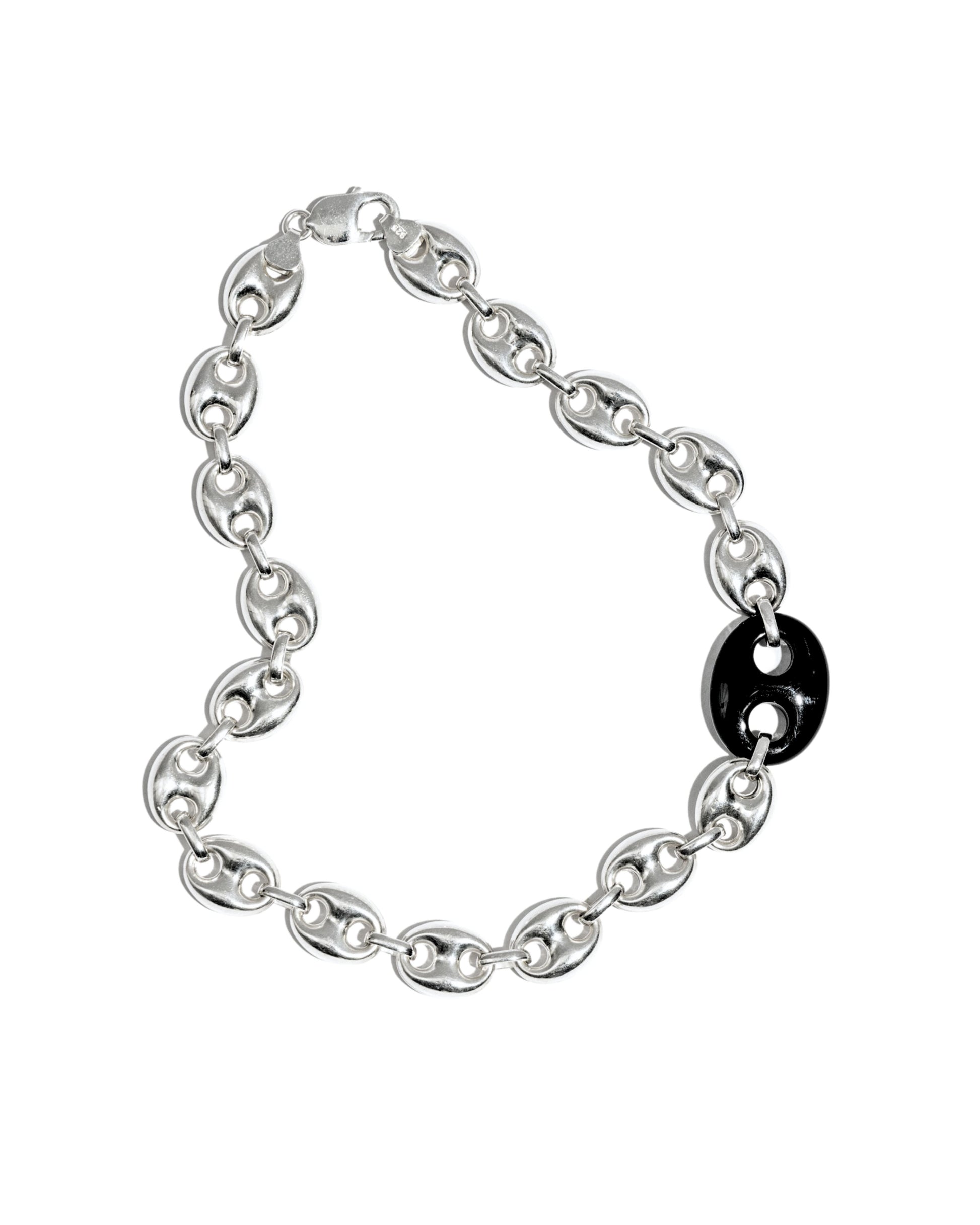 Luxury with an edge in our one-of-a-kind puffed mariner chain. Bigger and bolder than our Black Stone Necklace 002.
